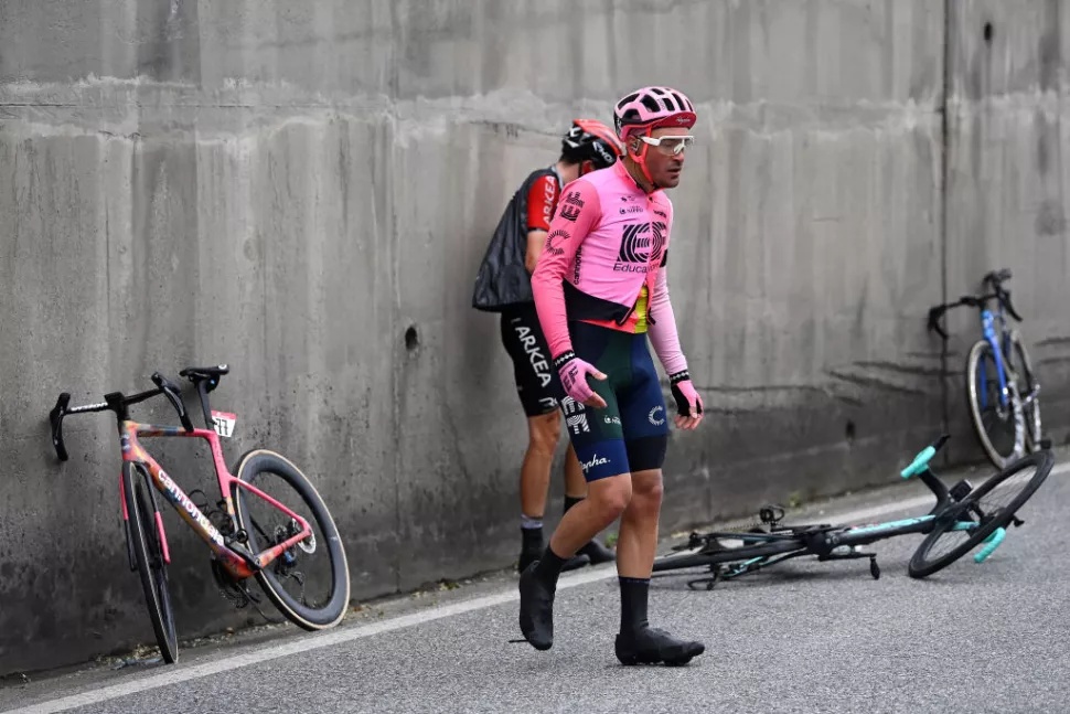 不久,(杰科车队)雷斯和(阿凯阿车队)卢卡斯撞车后双双摔倒在地,包括官方赛事车在内诸多车辆停靠在狭窄路边,一位官方工作人员过马路时未注意山上下下坡的选手,充当鬼探头和贝蒂奥(英孚教育车队)一同摔倒,引发争执。