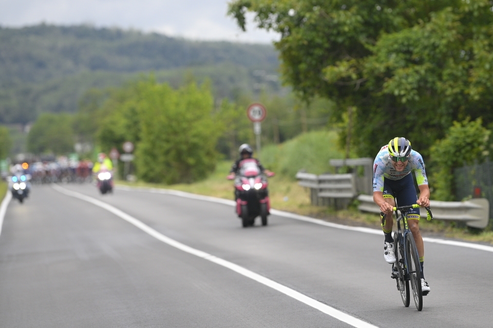 在卡马约雷的观众欢呼声中,比赛开始了。多名选手尝试突围,形成(科菲迪斯车队)昌皮恩、(埃奥洛车队)赛维利拉、(旺蒂车队)雷克斯、(巴迪亚尼车队)马格里、(克罗车队)斯托吉尼克和科尔切赫组成6人的突围集团,并和大集团拉开2分钟左右的时差。