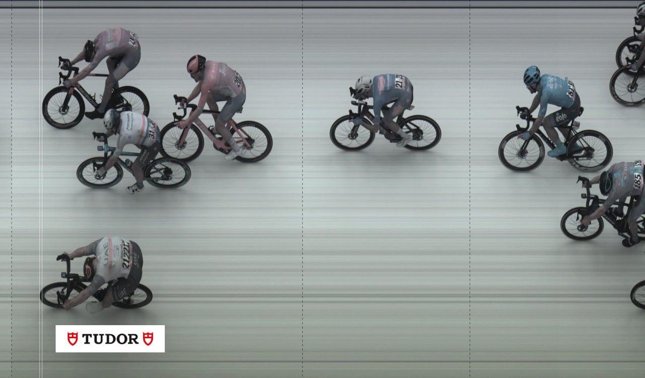 加维里亚摔车。在最后2公里,大多数车队试图来到集团前方卡位,其中(移动之星车队)加维里亚和(巴迪亚尼车队)穆鲁贝汗撞车摔倒,波及到(巴林车队)苏特林,导致参与集团冲刺人数锐减。