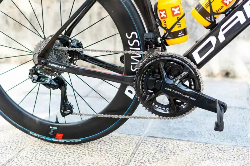 克里斯托夫的Dare VSRu是该团队的空气动力学公路公路车声称S码的车架重量为1190克(尽管克里斯托夫使用的车架尺寸为56厘米)。不过,这包括车架携带的各种金属零件,而许多品牌只引用单纯车架的重量。该团队还拥有 MA-AFO(“山脉之王”)轻量级自行车和 TSRf 计时赛自行车可供使用。VSRu 名称中的 u 显然代表“超越”;其他的字母有着更深一层的含义。