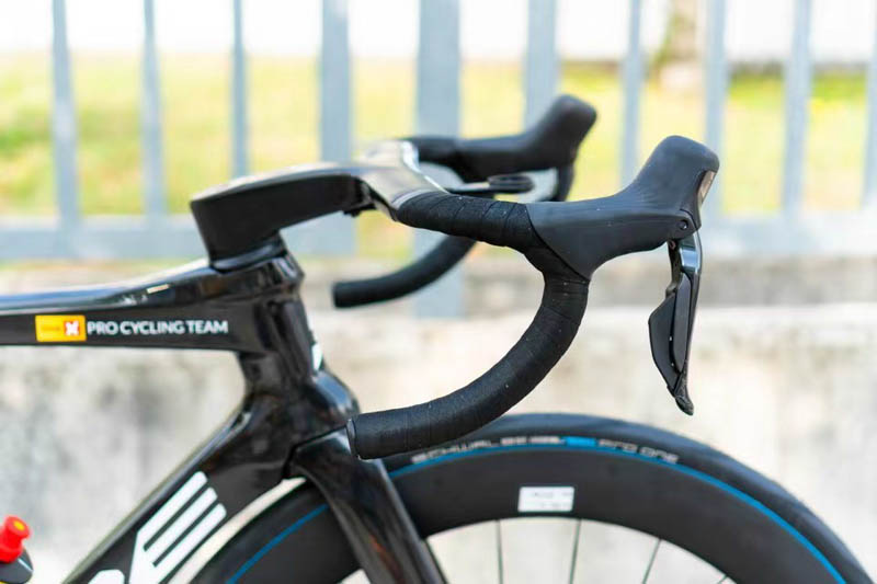 车轮配备28c宽度的倍耐力Pro One TLE的真空胎系统,我们在 20 毫米内宽的 DT Swiss 车轮上测量了它们能达到27.7mm宽。VSRu 车架组的间隙可容纳最大 30mm宽的轮胎。该车队的网站声称它运行的是Garmin Edge 530自行车码表,而不是最新的Edge 540,尽管我们预计该车队今年已经升级到Edge 540。Edge 530 和 540 是按钮操作的,而 Edge 830 和 840 是触摸屏。所有这些都来自Garmin更紧凑的数据显示,更大,更重的Edge 1040,我们并不需要。
