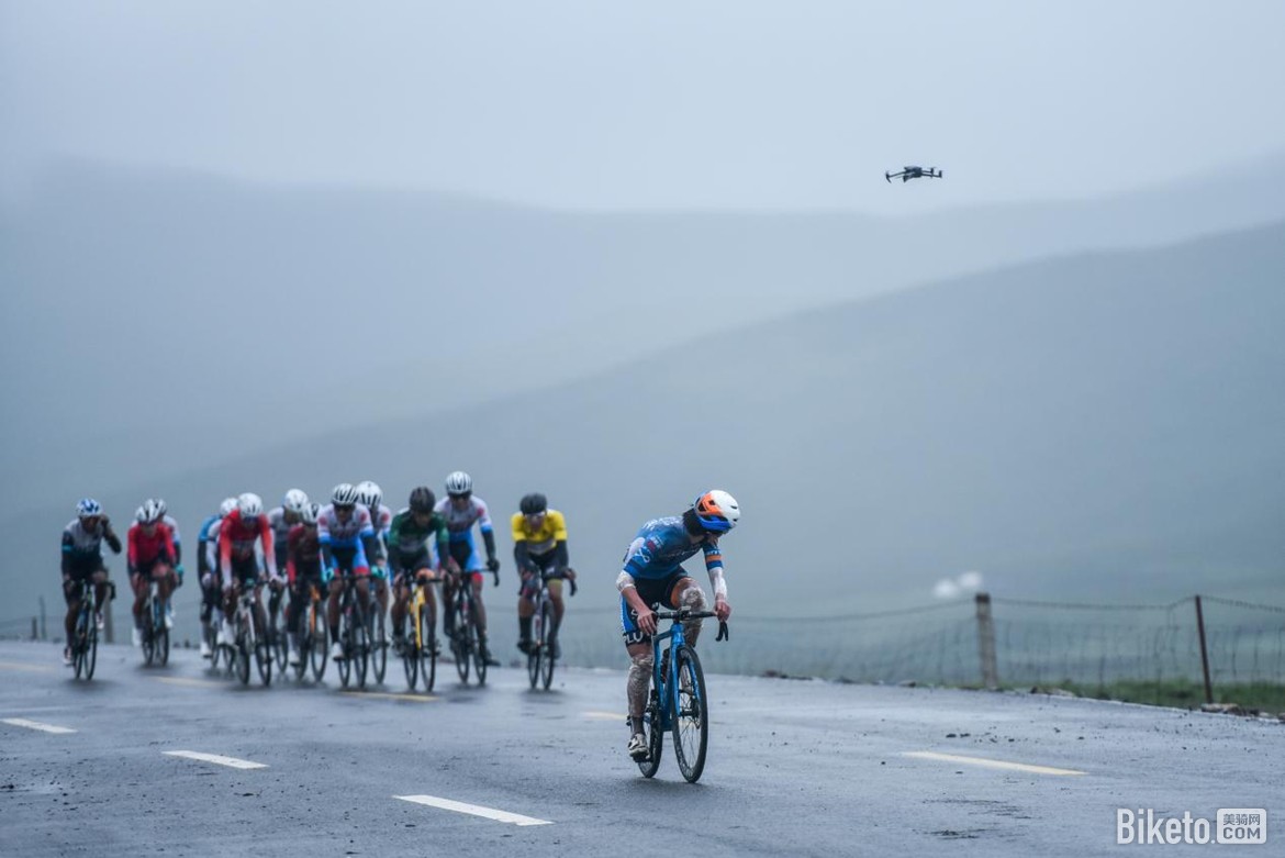 第二天的赛事设置于草原深处的公路上,经过了一夜小雨,气温骤降,出发前最高气温不到10℃,地面湿滑给本就具有一定难度的高原起伏路段增加了不少变数。