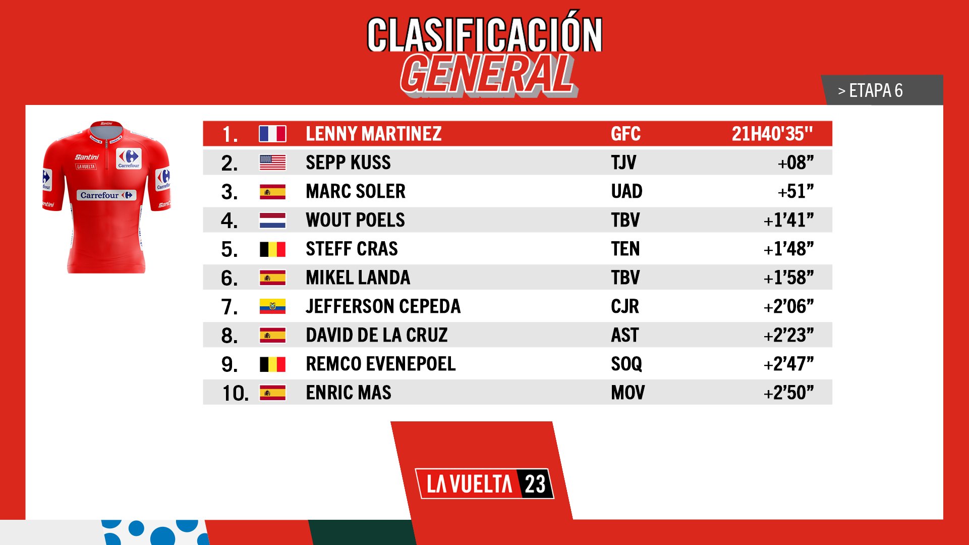 比赛结束后,莱尼获得红衫、白衫,格罗夫斯获得绿衫,赛普尔韦达获得圆点衫。9月1日举行环西S7(乌蒂尔——奥利瓦),敬请期待。