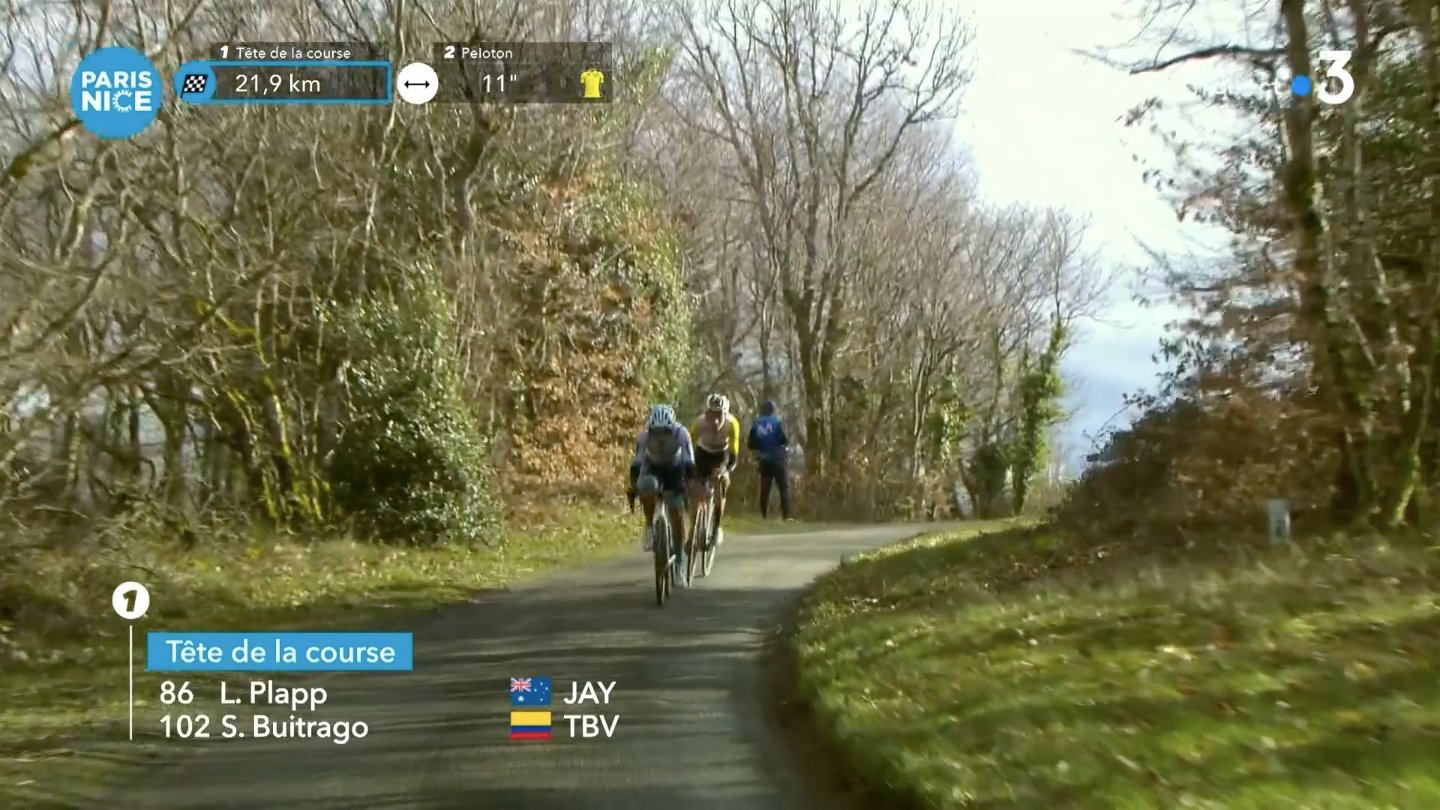 随着突围二人组进入布鲁伊山(坡程3公里,平均坡度7.7%),已经领先身后主集团50秒,本场比赛冠军及黄衫极有可能在他两之间产生。此时,普拉普在总成绩榜领先布伊特拉戈22秒。二人在起初1.5公里还能斗的平分秋色,但进入最后1公里阶段,普拉普体力下滑,布拉特伊戈甩掉他开始单飞。
