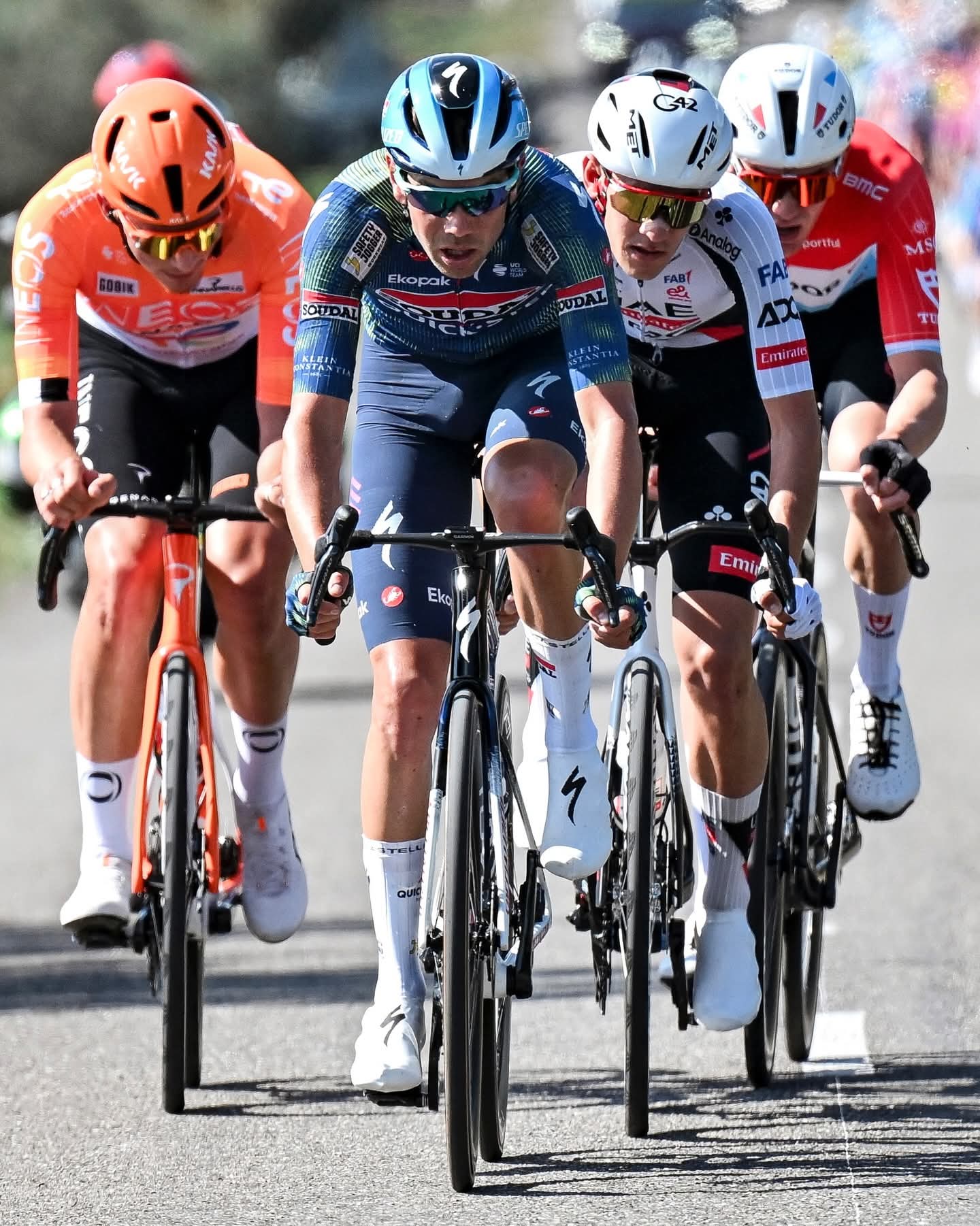 比赛开始后陆续有选手试图发起突围进攻,但大集团显然不想过早放走突围选手,经过约40公里攻防来自英力士、帝舵、快步、阿联酋航空车队4名选手组成突围四人组并成功领先1分钟以上秒差。