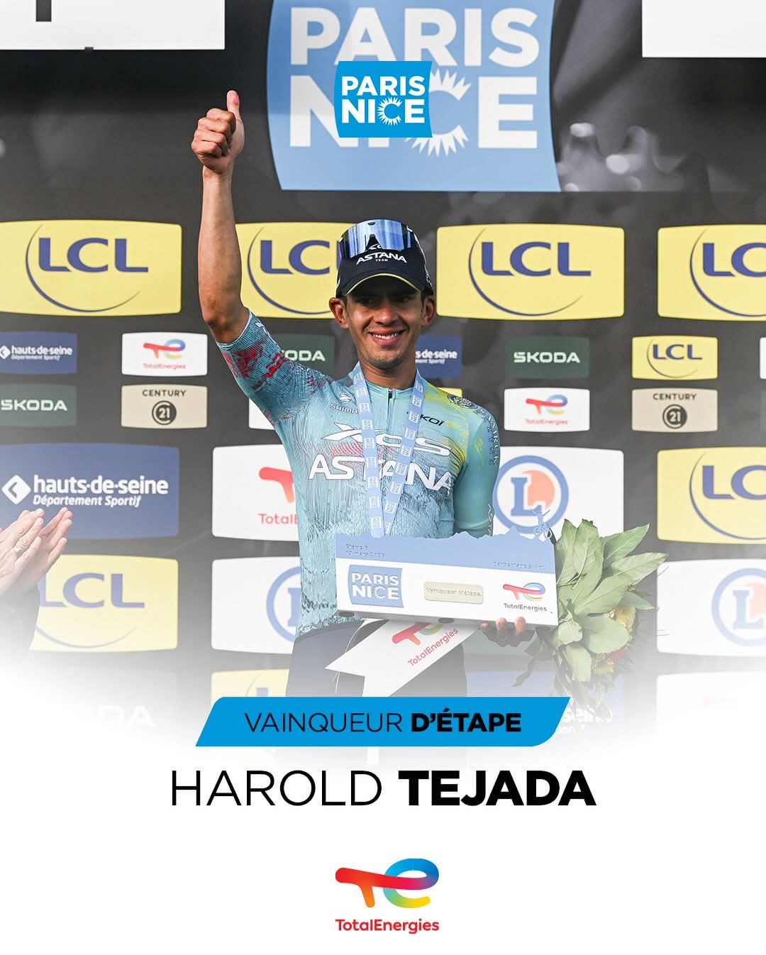 赛后,特哈达接受采访时说道“今天的对我来说这是一个非常感人的时刻,这是我的第一个世巡赛冠军,这一切胜利都源于平时大量的坚持,我在倒数第二个爬坡时遇到了机械故障迫使我不得不换车,我的队友们表现得非常出色,帮助我在最后的爬坡中处于最前面。我知道一路起伏直到终点线,所以我全力以赴争胜,感谢喜德盛-阿斯塔纳车队。”