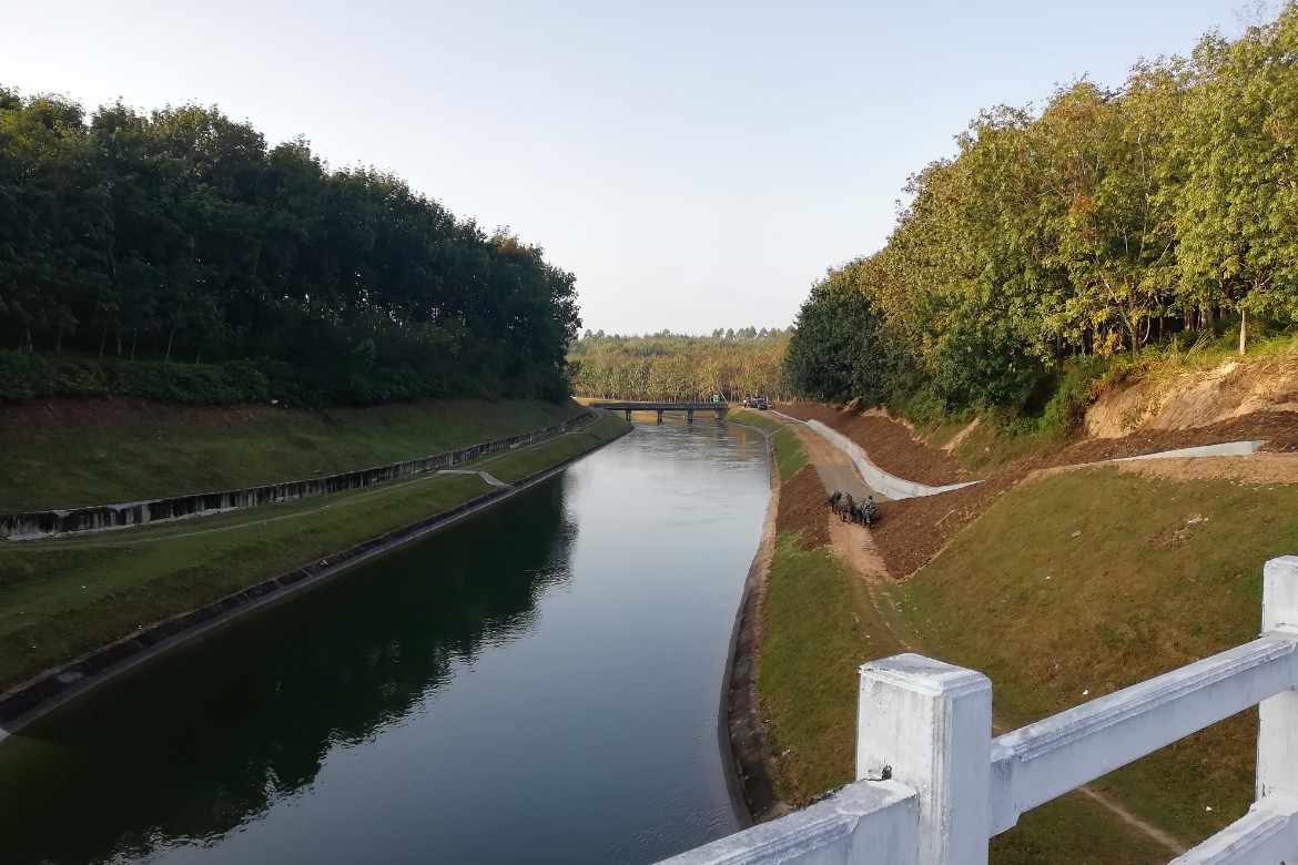 平静清澈的河流从国道下方穿行而过,在晨间温暖阳光的照射下,反而有一种细腻的美感。