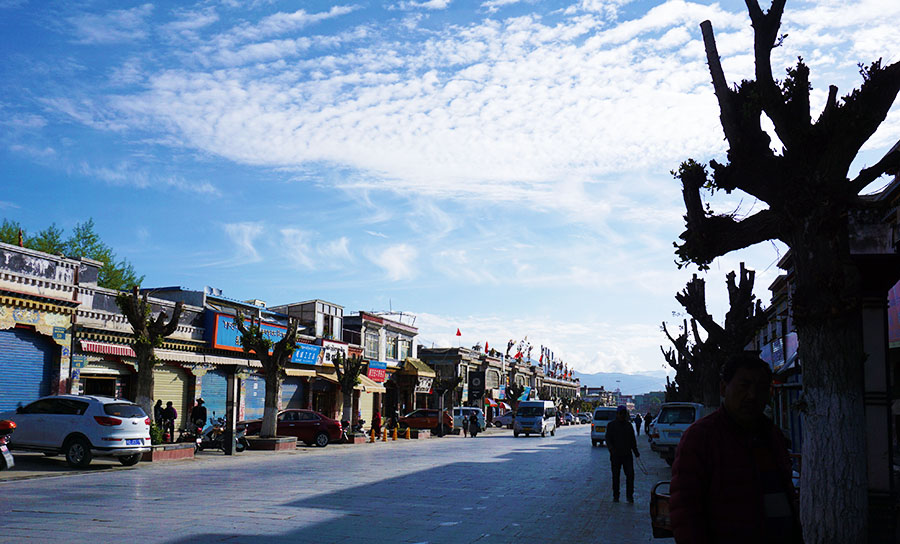 翌日起得很晚,一个人在扎寺附近转了转,想到昨天说的小布达拉宫,于是沿着街道朝向那个方向走去。早晨没有吃饭,途中饿了,见一兰州拉面馆吃了碗面,服务生不断过来倒糖水,不下二十次,本来想让他把壶放下自己倒,服务生说:没事没事,最后我要走还过来说:来来,再来两碗,再来两碗,这水喝了健康。