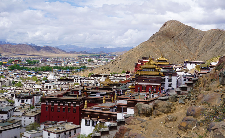 到日喀则算是一个小阶段,从拉萨可以沿318国道直接到达,我采取绕羊湖方式,不但路远,而且难度增加了 很多倍,到日喀则算是回归原路。日喀则看什么?心里并不清楚。到日喀则时没用导航,瞎走,后来稀里糊涂到了扎寺广场,然后到了步行街,古树蔽日,藏风浓厚,就住在了这里。路过的街道很漂亮,但是不可能转大街,所以看日喀则重点在扎寺附近。两个方案:周边有好玩的就自由转转,没有就买票去扎什伦布寺。扎什伦布寺其实很有历史,一世达赖为纪念圆寂的经师开始在这里兴建供奉佛像,至四世班禅扩建,之后历代班禅成为这里的法台。十八世纪,西藏出现两个政教合一的政府,一是拉萨以达赖为首的政府,另一个就是日喀则以班禅为首的政府,归清政府直接领导。班禅大师和堪厅扎萨喇嘛是札什伦布寺的最高领导。