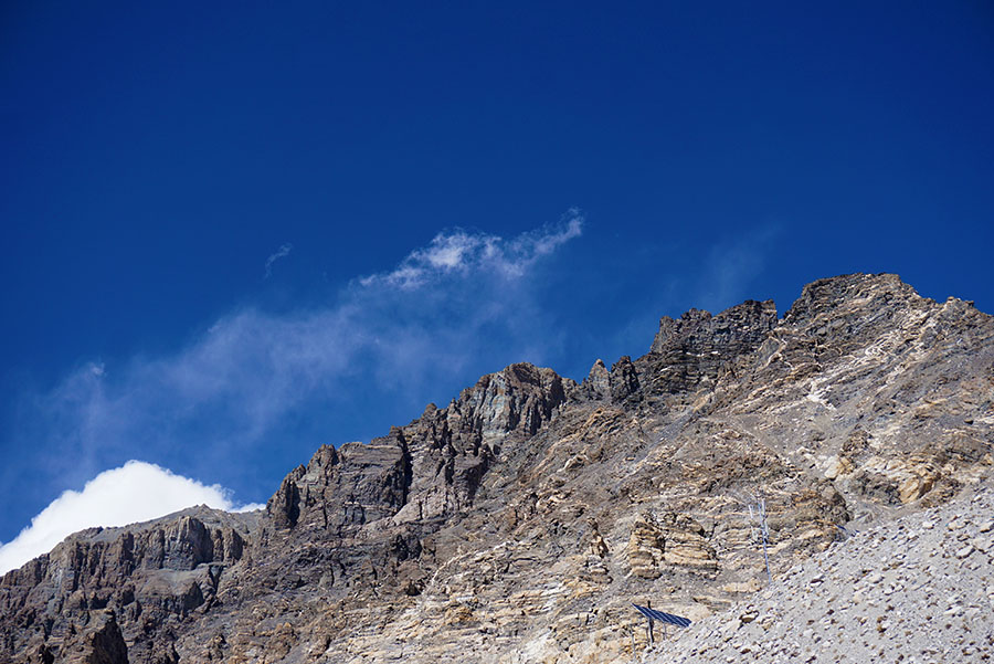 几公里后到达碎石滩上的帐篷旅馆,大本营离这里还有三公里,小张想要推车负重而去。