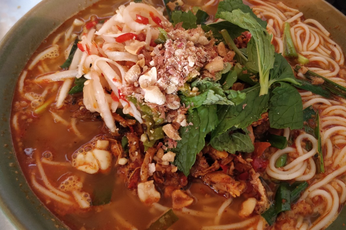 从言语中我得知昆明本地的米线有两种:一种宽米线,口感比较糯。另外一种米线细米线,本地人比较爱吃的,口感是比较硬的。米线出锅后需要自己加各种样式的辅料,我竟然神奇的发现了薄荷叶,便添了几叶尝尝鲜。老板娘对山东人的印象,问我是不是都爱吃煎饼。就像我问她,你们是不是都爱吃米线一样,有时候饮食就代表了一方文化。