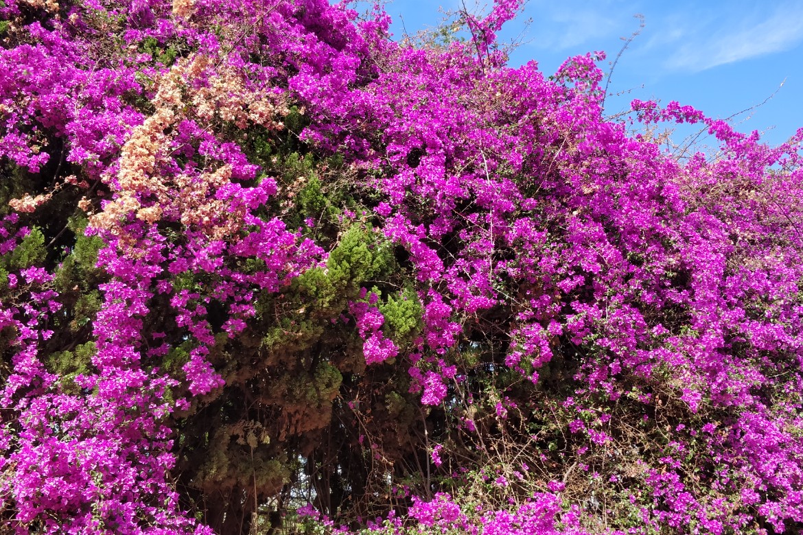 我也真正体会到了为何叫做七彩云南。各种各样的植物,紫罗兰盛开在整个湖边,还有更多的是我叫不上名字来的花朵品种。抚仙湖路边的树大多为低矮的热带树种,绿树葱油,带着一丝温柔和俏皮的感觉。这里的山与北方的山不同的是山的颜色大概是红褐色,土壤也是红褐色的土壤。自小见惯了黄土地的我,见到这样的土壤的确有些诧异。尽管曾经的地理课上有讲述过云贵高原的土壤,但当真正看到感受又是不同的。