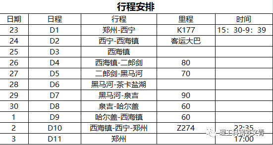 我的整个行程计划是11天,除去往返火车+大巴的4天,整个环湖的时间为7天,其中西海镇停留1天,黑马河停留1天,环湖360km分为5天时间来完成!