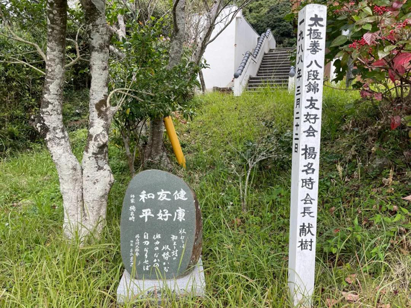 纪念馆门票210日元,没时间不进去了,停车场还有个杨名时提的词“健康 友好 和平”,这位杨会长出身山西省五台县,京都大学大学部毕业,后来归化日本,在日本创立和推广八段锦太极拳,虽然不是太有名,也算一座中日桥梁吧。