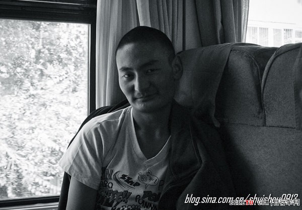 在兰州站下车的人很多,车厢里的座位几乎空掉了一半。我终于找到了一个地方坐下。斜对面的地方,坐了一位年轻的喇嘛,引起了我的注意,于是我便开始偷拍。